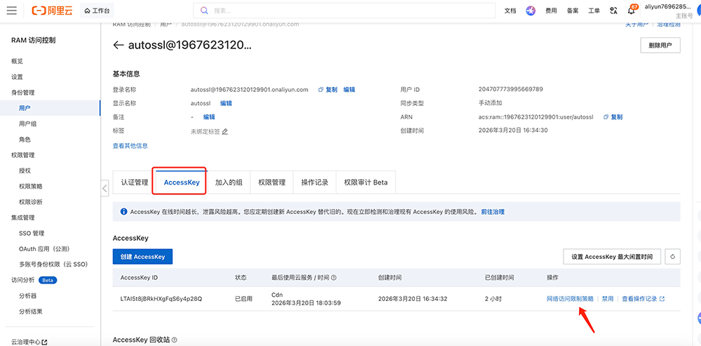 地址:https://ram.console.aliyun.com/users