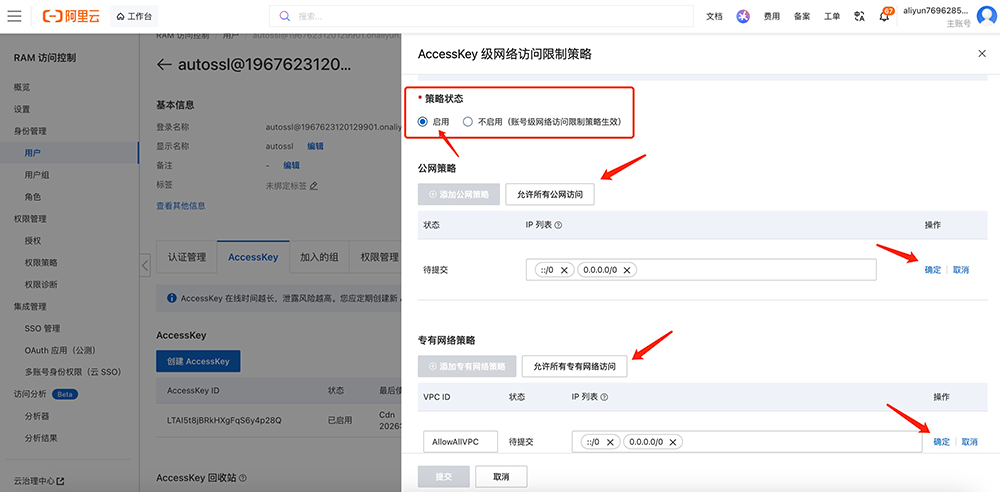 注意:如果你的域名归属阿里云,但是解析的服务器是海外,还需要设置网络访问权限。